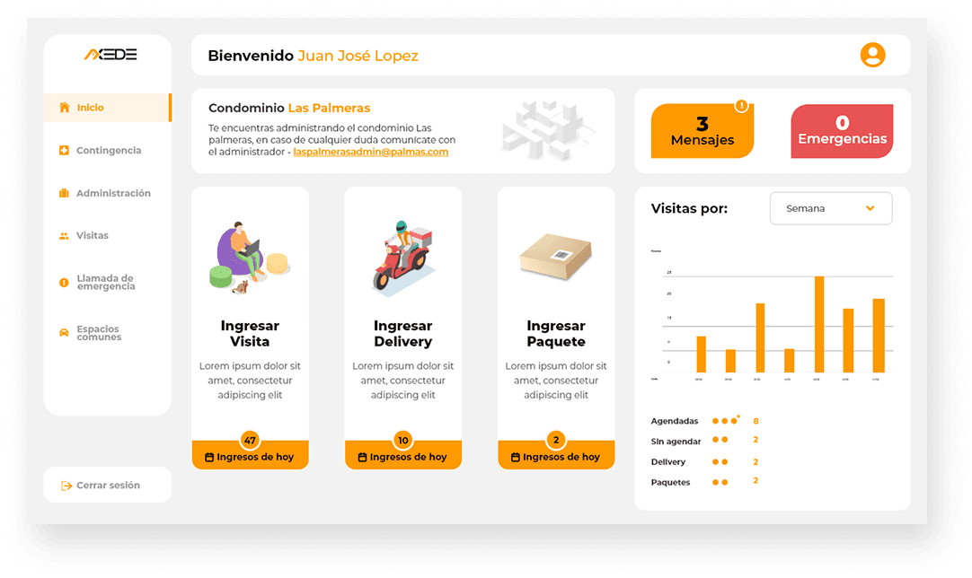 Axede es una empresa que ofrece servicios de control y acceso a condominios, permitiendo a los residentes gestionar y supervisar quién entra a su comunidad. El proyecto comenzó con la necesidad de crear una serie de plataformas digitales para distintos perfiles de usuario: residentes y personal de seguridad. Desde una app para agendar y recibir visitas, hasta un sistema ágil para que los guardias pudieran registrar accesos y notificar entregas, el enfoque estuvo siempre puesto en mejorar la experiencia del día a día en los espacios habitacionales.