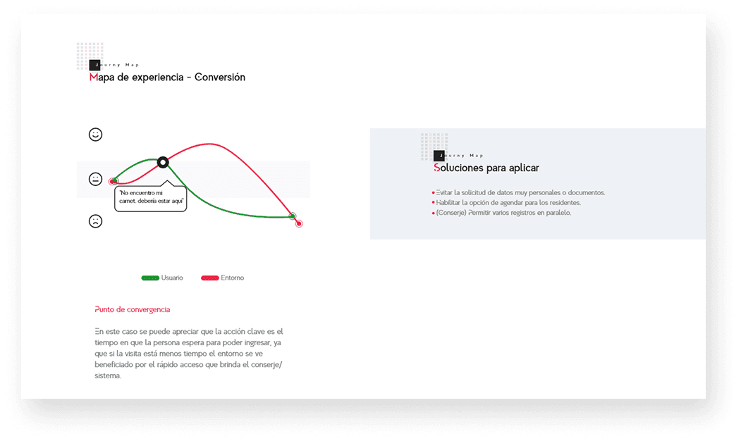 El mayor desafío estuvo en entender el contexto real de uso por parte de los guardias de seguridad, quienes debían atender a múltiples personas bajo presión, en condiciones poco ideales y con herramientas obsoletas. Para ello, implementé una estrategia de investigación basada en tests de guerrilla, permitiéndome observar en terreno los problemas más comunes en tiempo real.