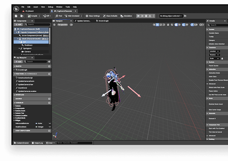 Oroboros fue un proyecto desarrollado como entrega final del diplomado de Unreal Engine 5. Se trata de un videojuego ambientado en un futuro distópico, con estética cyberpunk, donde el protagonista se enfrenta a un entorno hostil dominado por inteligencias artificiales erráticas en un pueblo desértico.